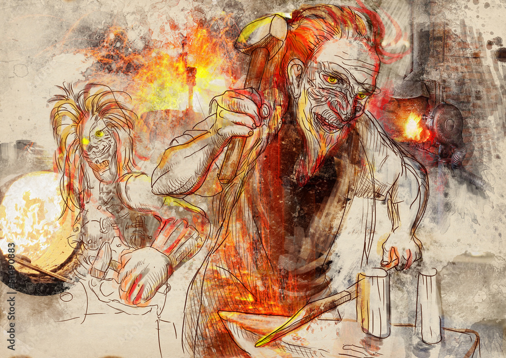 Samolepka Hephaestus. Greek myths and legends - full sized hand drawing