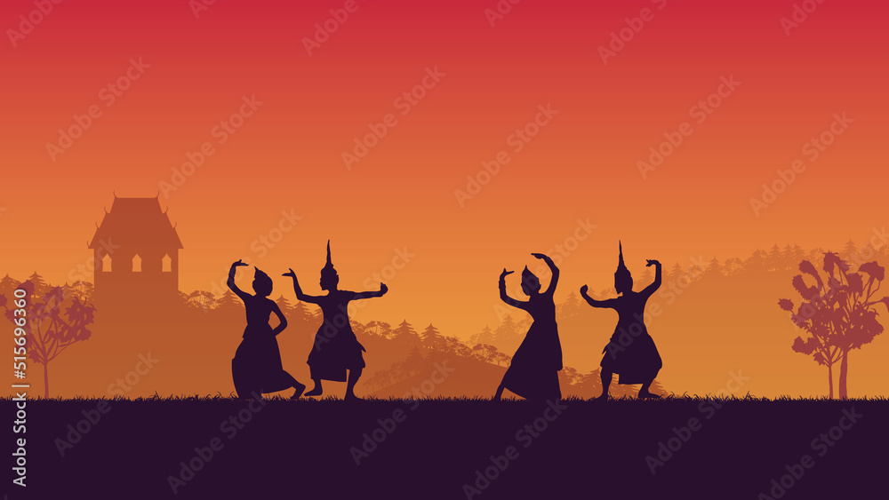 Samolepka silhouette of traditional Thai Dance on gradient background