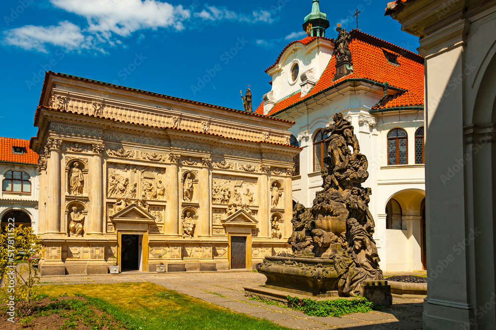 Samolepka Courtyard of the Loreta monastery in Praha with beautiful baroque buildings and statues