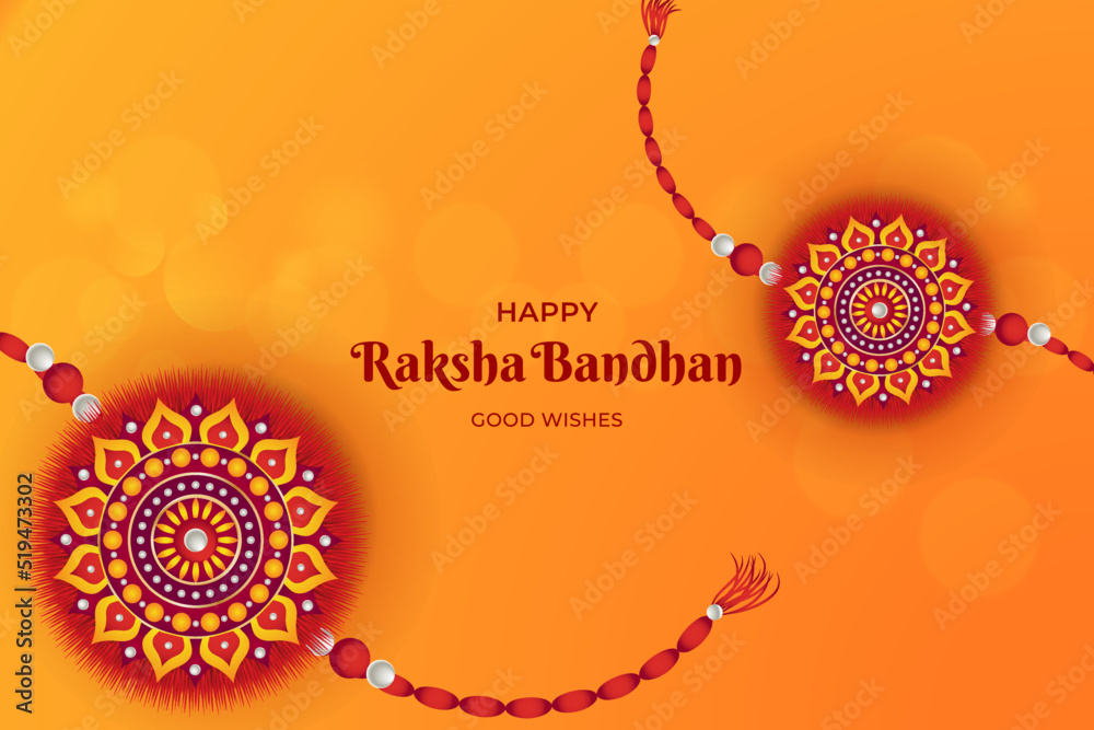 Samolepka Happy Raksha Bandhan red background with decorative Rakhi