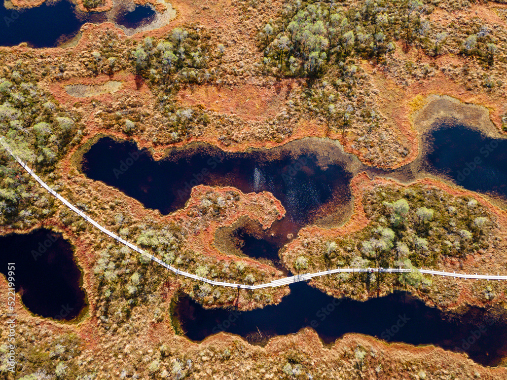 Samolepka Wooden hiking trails in swamps or bog in Estonian nature reserve Kakerdaja