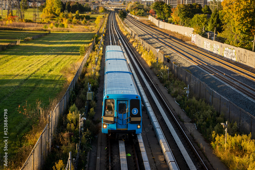 Samolepka Blue rapid system train passing through the fields of Scarborough, Ontario, Cana