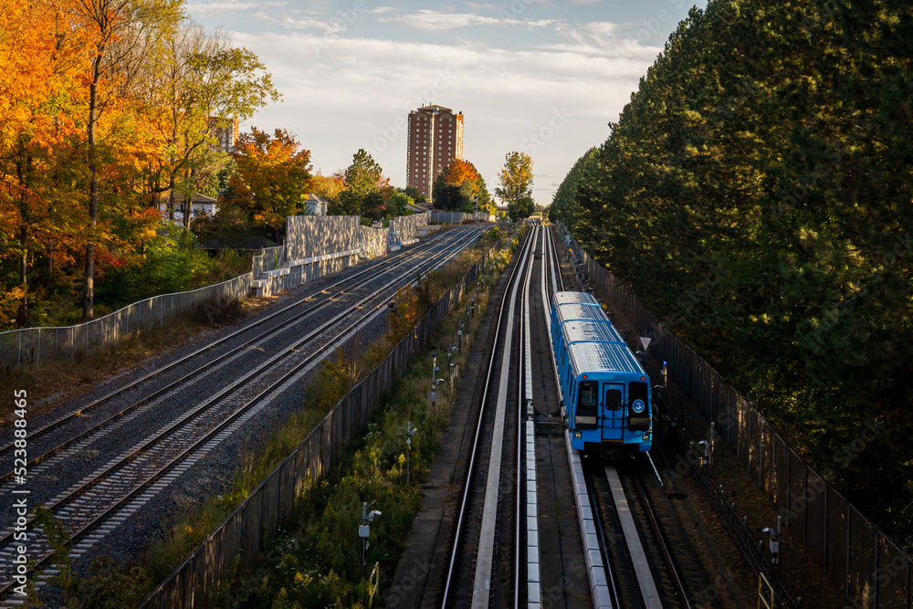 Samolepka Blue rapid system train passing through the countryside forest of Scarborough, O