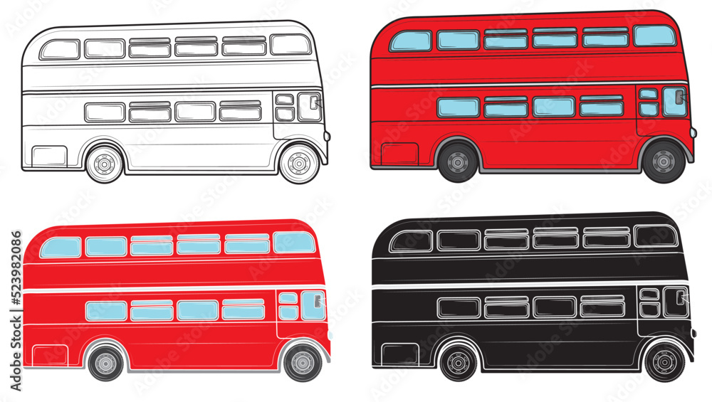 Samolepka Set of Double-decker bus in London in isolate on a white background
