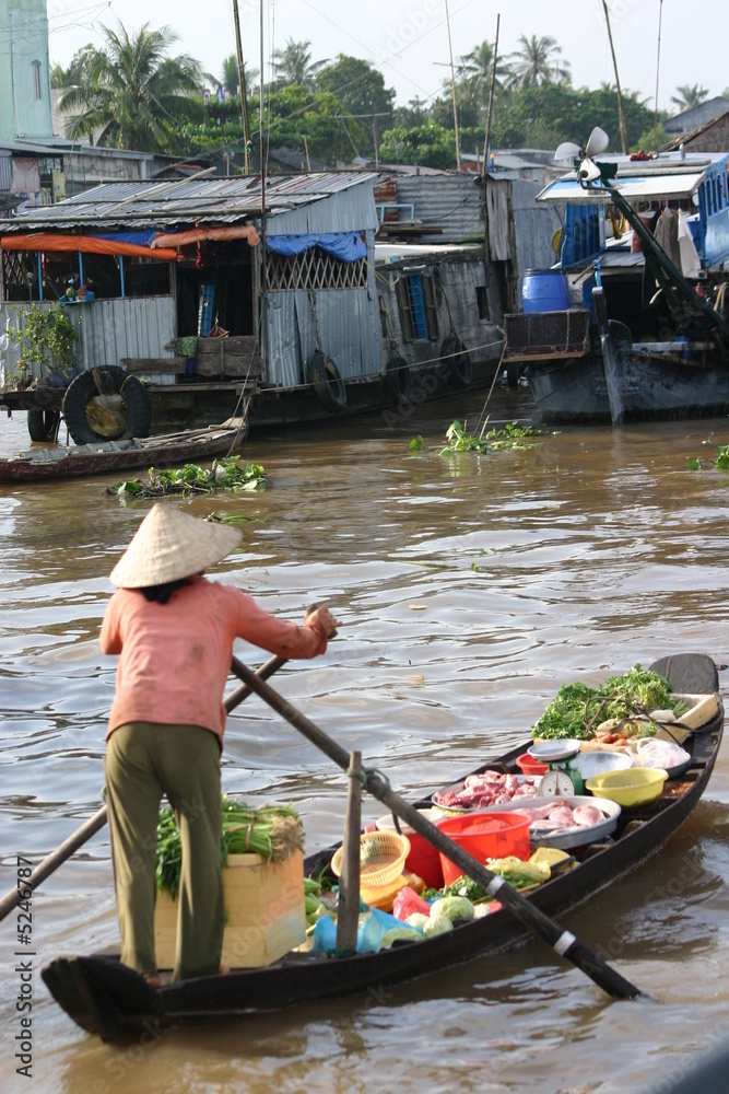 Samolepka Barque sur le Mekong Marché flottant
