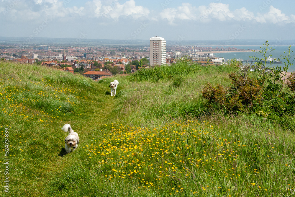 Samolepka White dogs on a hiking trail near Eastbourne, England, United Kingdom