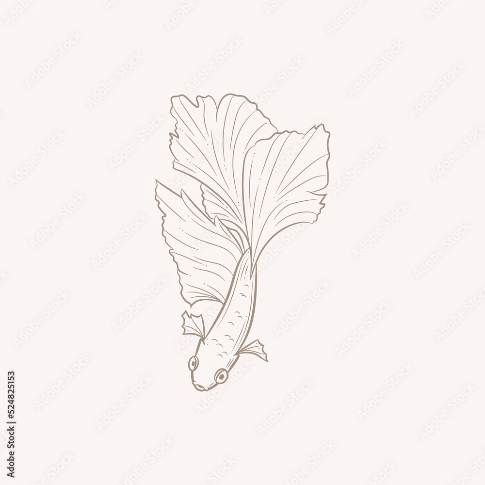 Samolepka Elegant line art drawing of a betta fish, siamese fighting fish vector