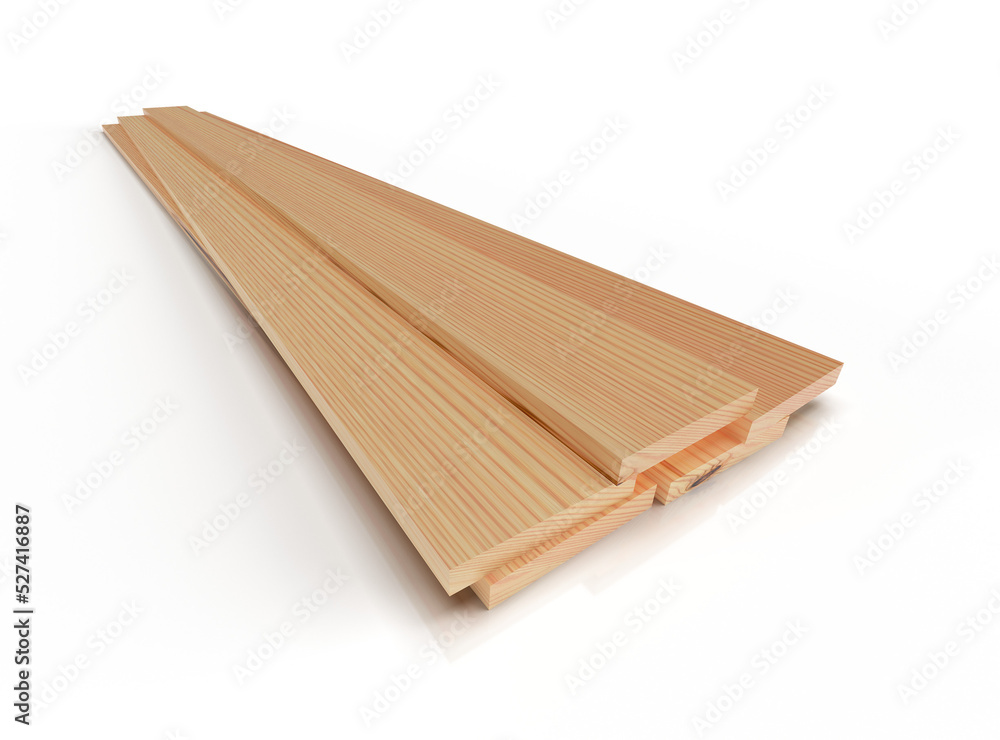 Samolepka Stack of wooden boards on white floor, isolated. 3D rendering.