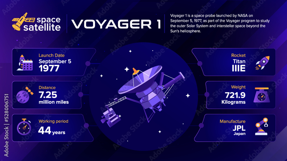 Samolepka Space Satellites Voyager 1 Facts and information -vector illustration