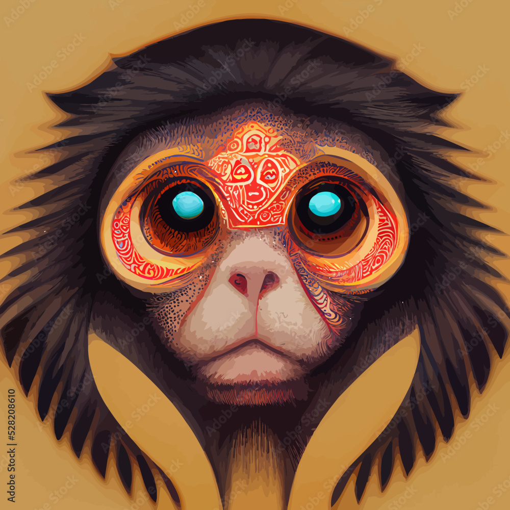Samolepka illustration vector graphic of baby monkey face in hand draw mandala style good