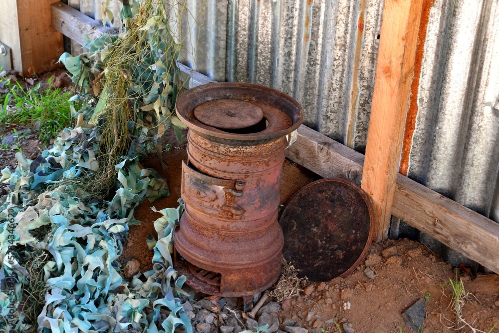 Samolepka ancien poil a bois rouillé dans une vieille maison abandonnée servant d’abri aux