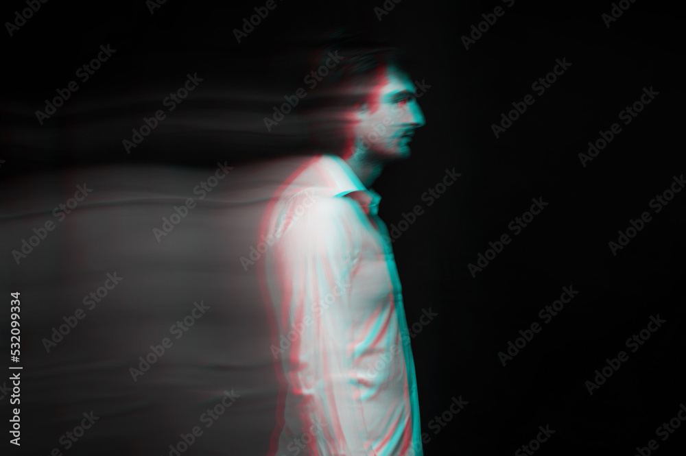 Samolepka supernatural blurry portrait of a dead man's soul on a dark background