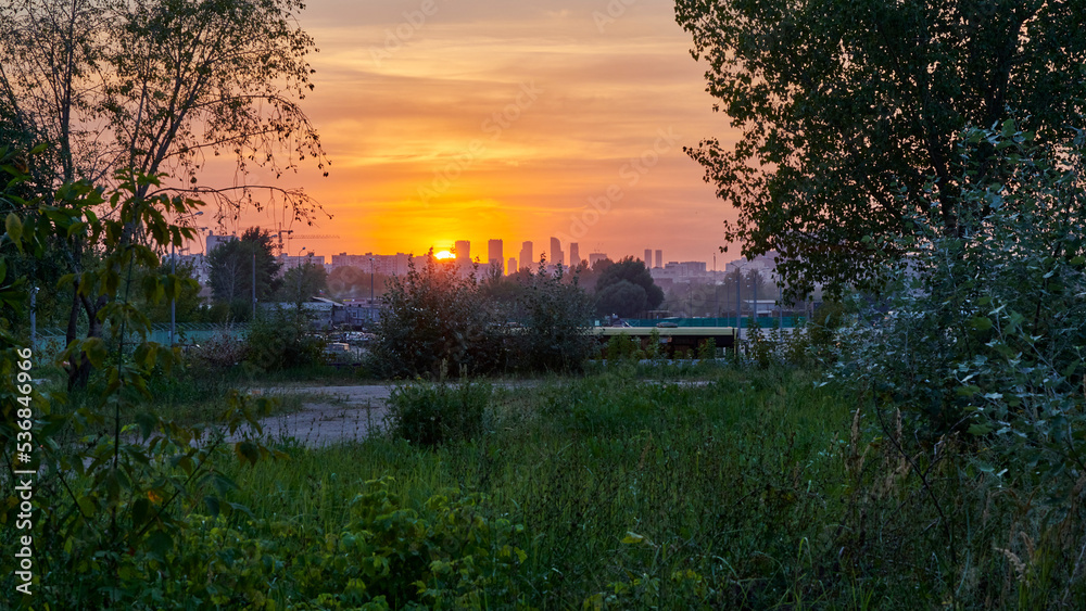 Samolepka Moscow. August sunset in Pechatniki district