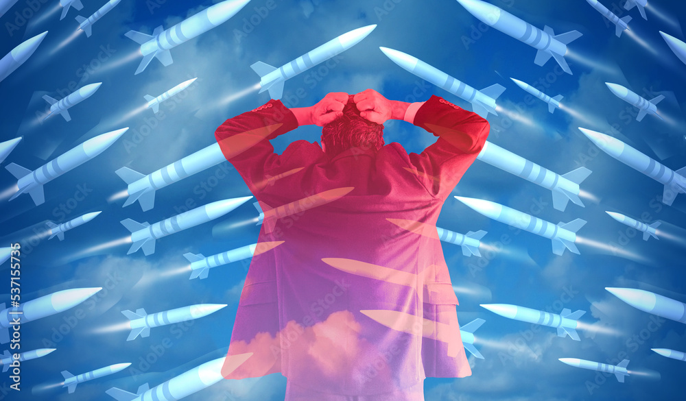 Samolepka Nuclear War fear and worry of armed conflict or armageddon and menacing bomb thr