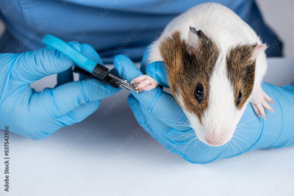 Samolepka Nail trimming with a claw cut in a small guinea pig at a veterinarian's appointment