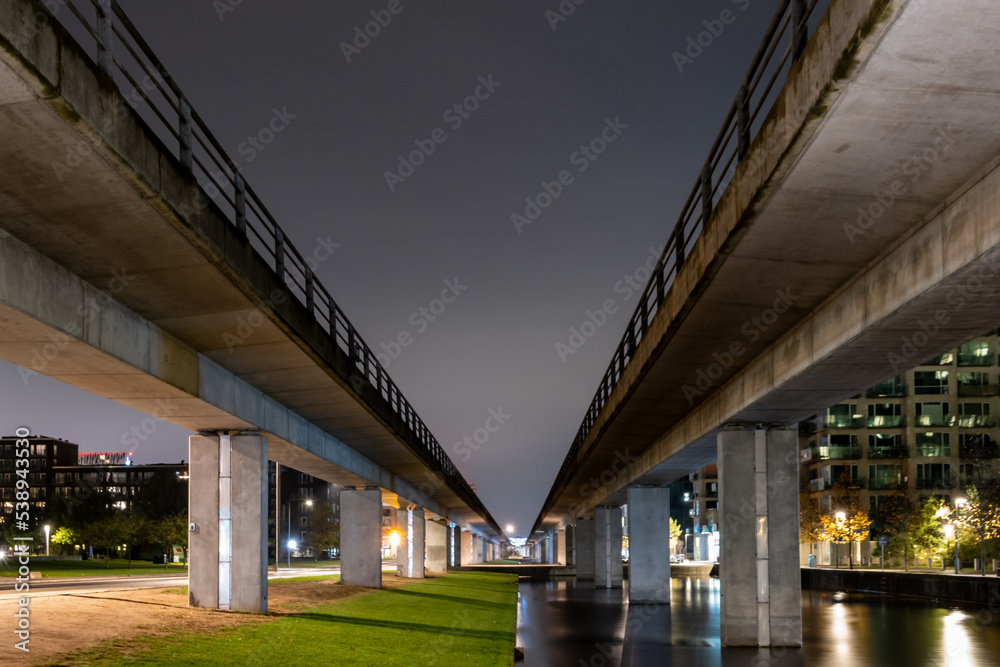 Samolepka Copenhagen, Denmark Elevated Metro tracks in the Orestad district of town