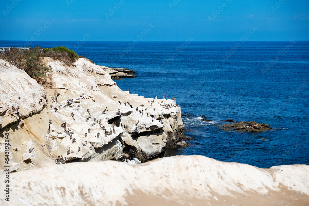 Samolepka Bird cliff rock California La Jolla cove with brown Pelican and Brandt's cormorant at goldfish point
