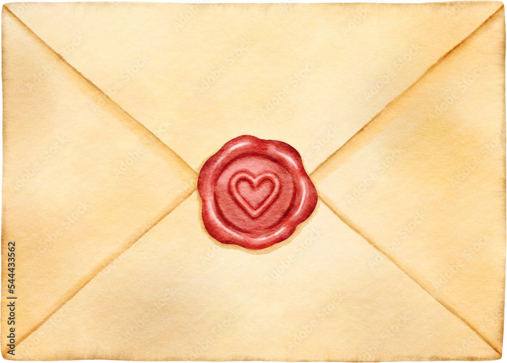 Samolepka Yellow vintage mail envelope letter with red love heart sealing wax