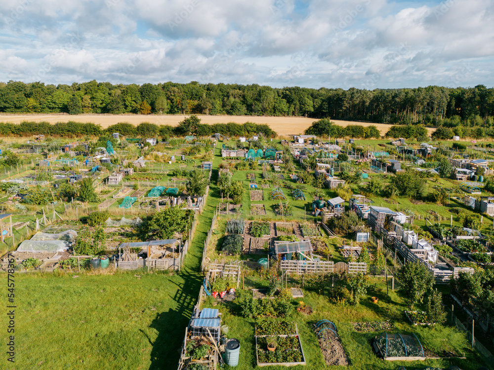 Samolepka Aerial view of allotments for gardening vegetables