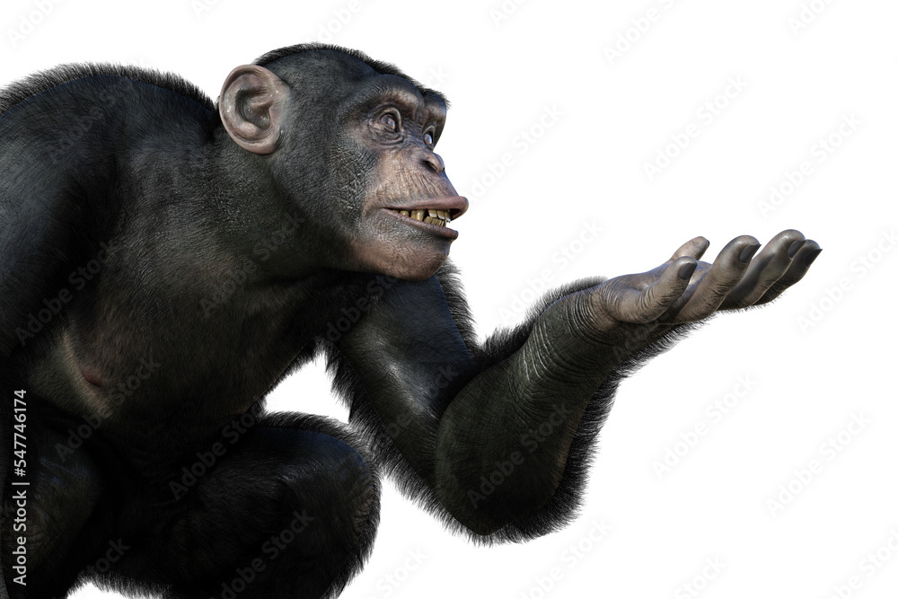 Samolepka Chimpanzee monkey sitting with one arm ready to hold something, illustration