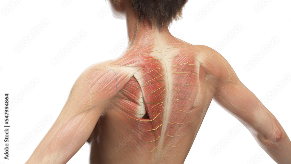 Samolepka 3D Rendered Medical Illustration of Female Anatomy - Muscles of the Upper Back
