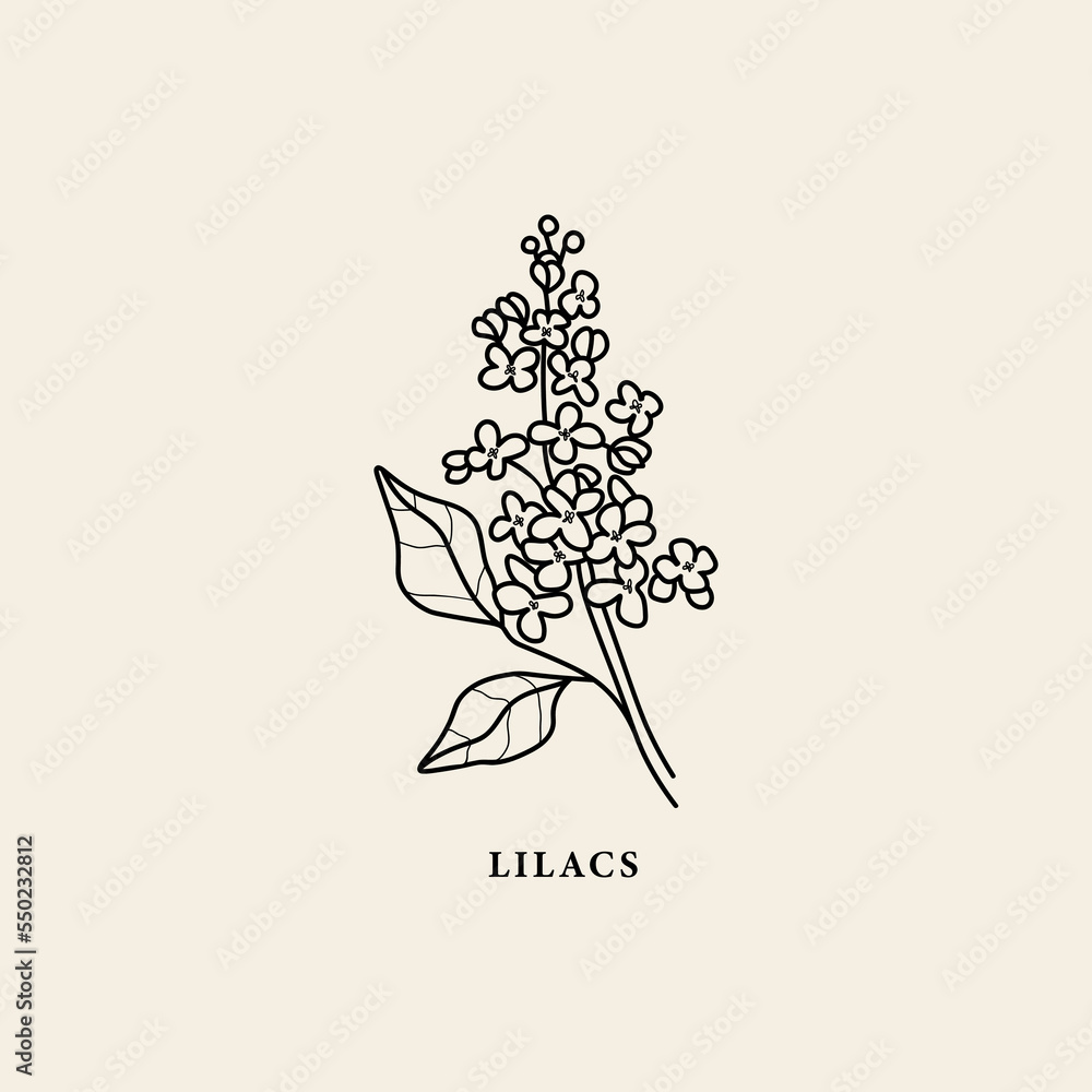 Samolepka Line art lilacs flower branch illustration