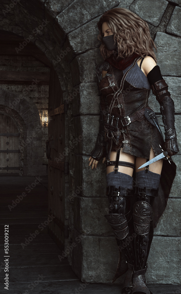 Samolepka Mysterious silent rogue assassin female quietly stalking her next target