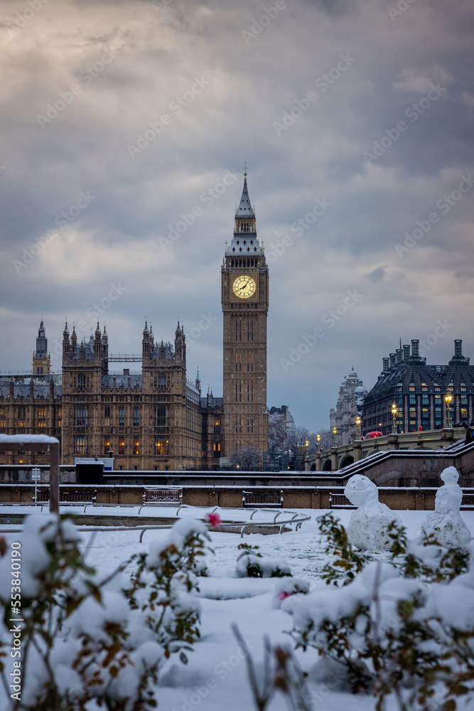 Samolepka Beautiful view of the snow covered Big Ben clocktower at Westminster, London, En