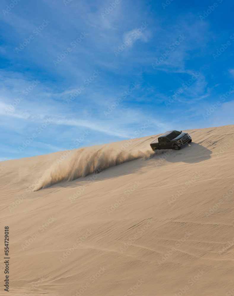 Samolepka Desert Safari, a black SUV is bashing through the arabian sand dunes in Doha, Qa