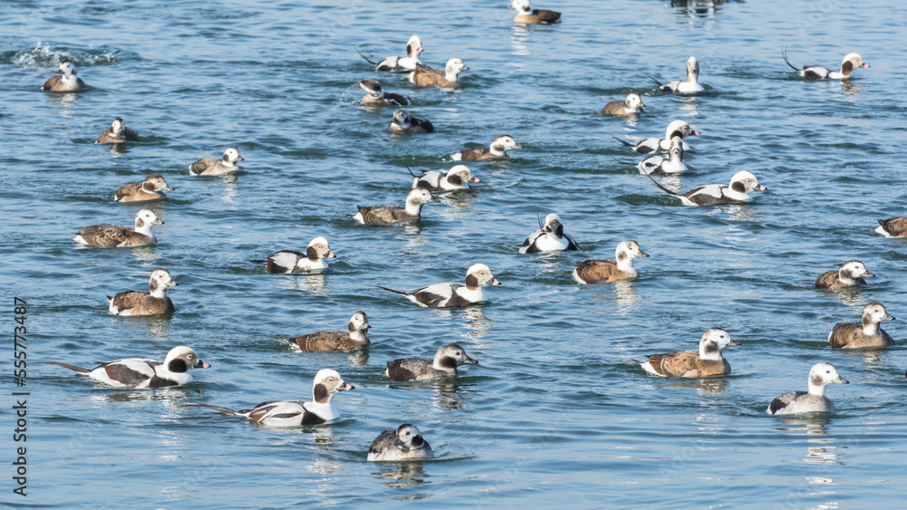 Samolepka Flock of long-tailed duck (Clangula Hyemalis) in Tommy Thompson park, Toronto, C