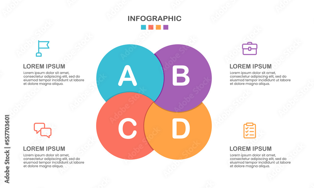 Samolepka Overlapping 4 circles infographic. Vector illustration.