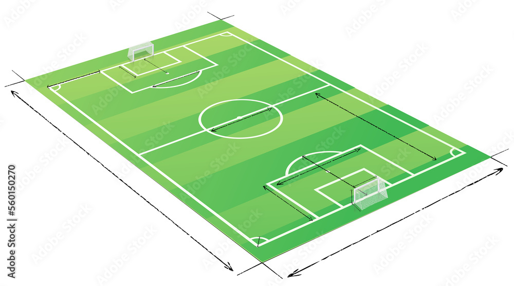 Samolepka Soccer field in 3D with its marking and arrows drawn with pencils defining the m