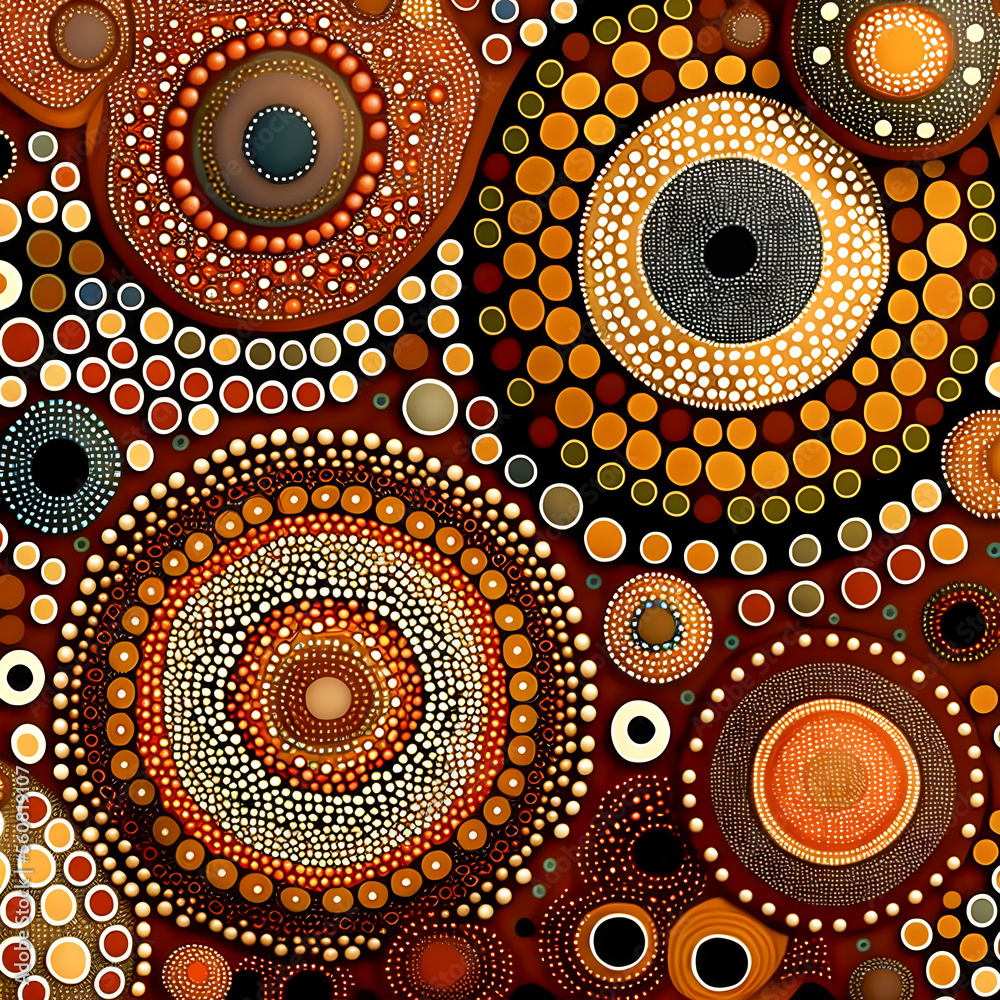 Samolepka Aboriginal dot art, textile pattern print, earthy colors Generative AI