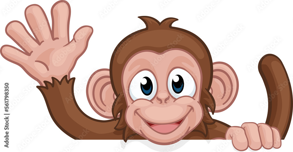 Samolepka Monkey Cartoon Animal Behind Sign Waving