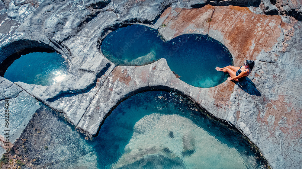 Samolepka Girl Sitting At Edge of Famous Figure 8 Pool In Royal National Park, Australia