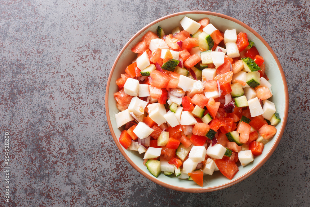 Samolepka conch ceviche salad with vegetables such as tomatoes, cucumbers, onions, peppers close-up in a bowl on the table