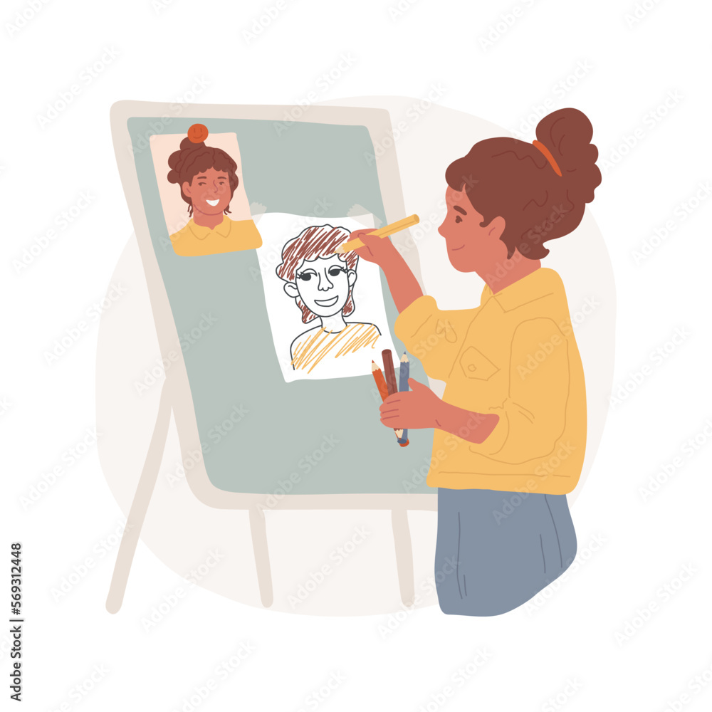 Samolepka Drawing self-portrait from a picture isolated cartoon vector illustration