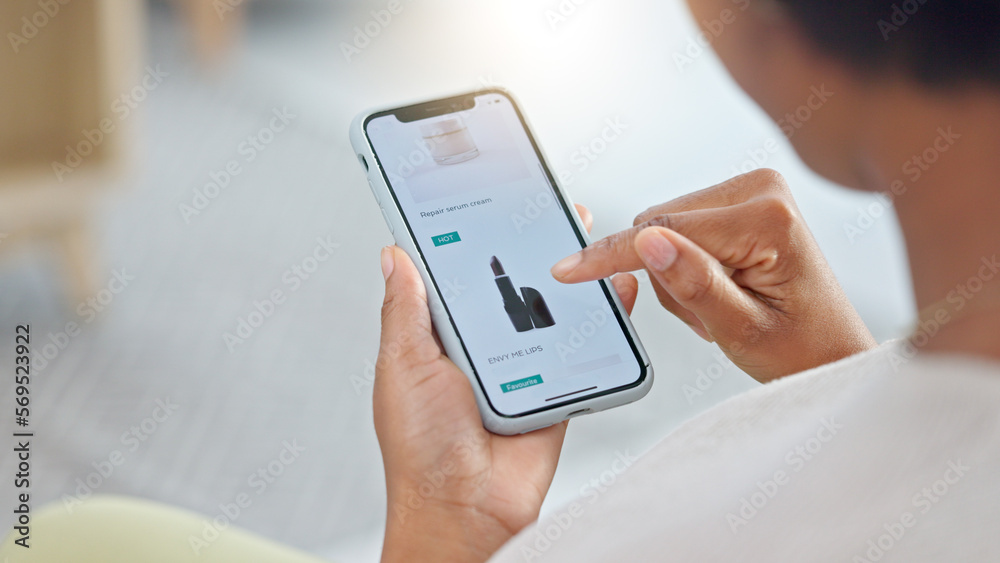 Samolepka Shopping online and scrolling through makeup products to find a sale or discount