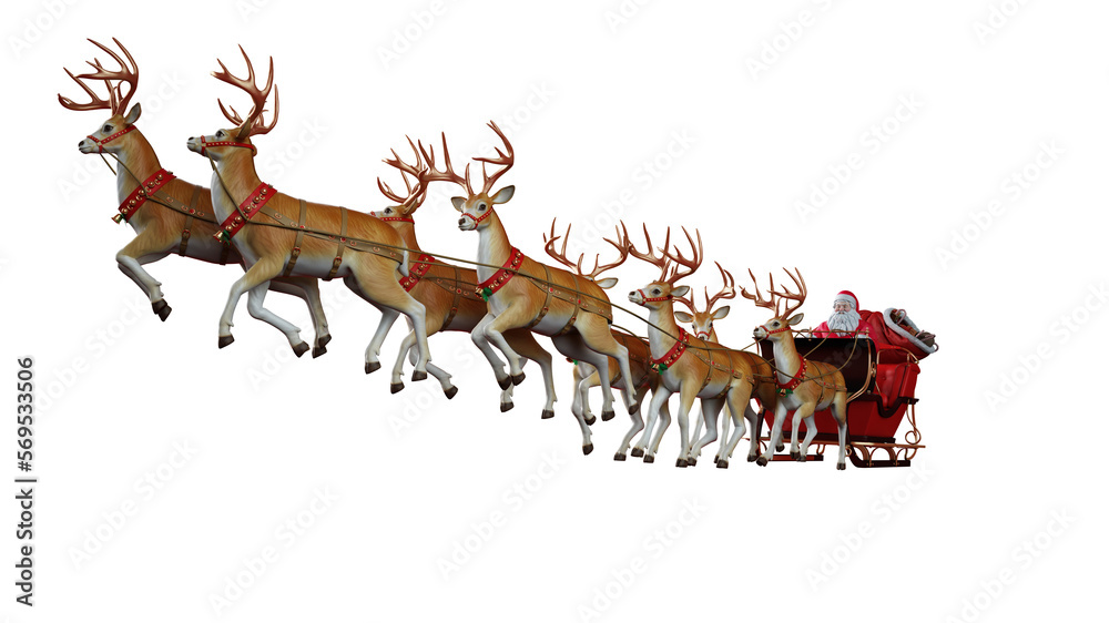 Samolepka santa claus ready to deliver presents with sleigh with reindeer