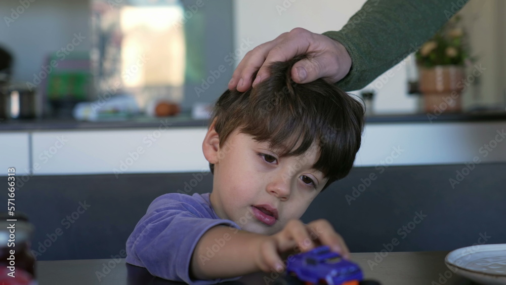 Samolepka Caring father stroking his little son on head