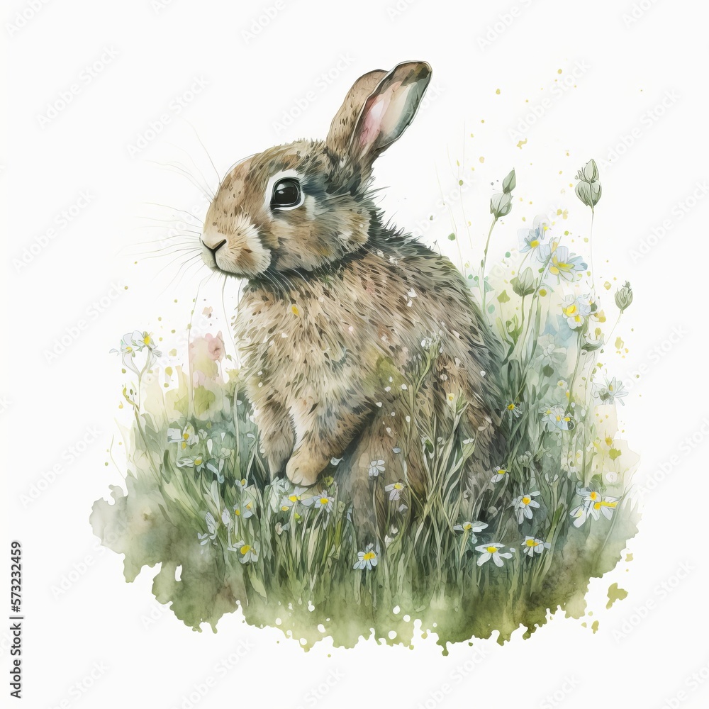 Samolepka rabbit in the clearing hare watercolor paint Generative AI