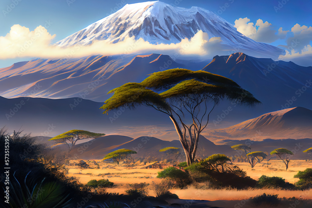 Samolepka Kilimanjaro on african savannah realistic. Generative Ai