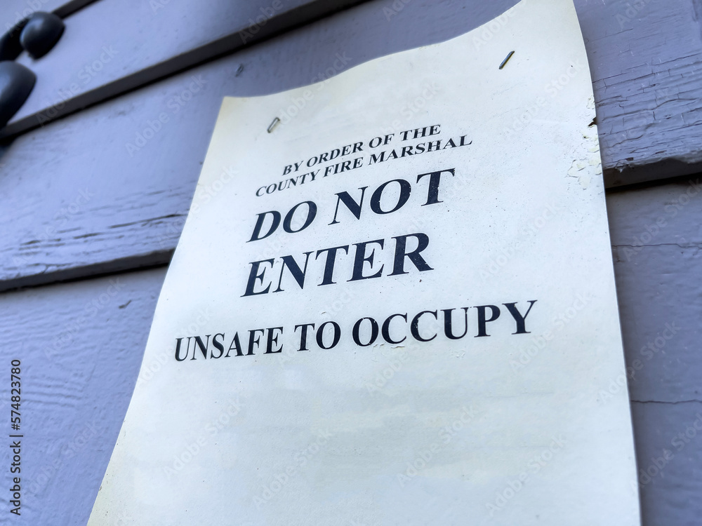 Samolepka Close up view of a Do Not Enter sign outside a condemned house