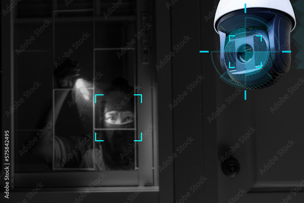 Samolepka CCTV Camera Showing A Burglar Stealing Things In The House