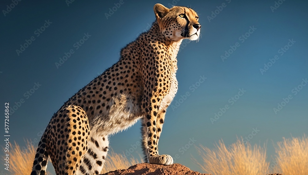 Samolepka cheetah in the wild, side view, golden hour, Ai Generate