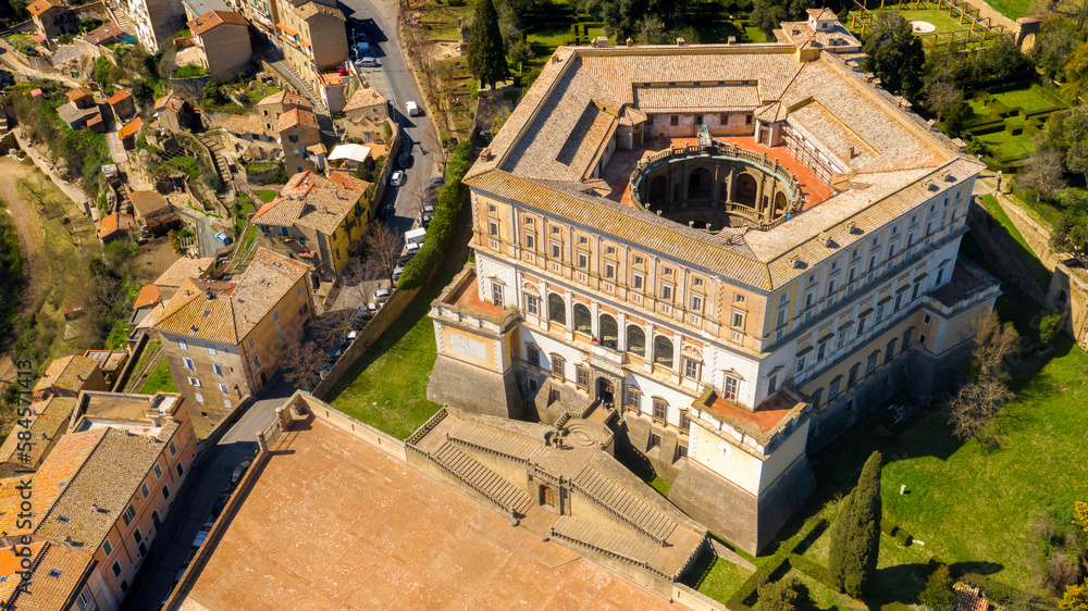 Samolepka Aerial view of the Villa Farnese, a pentagonal mansion in Caprarola, near Viterbo, Italy