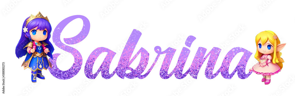 Samolepka Sabrina - lilac - glitter female italian name with magical warriors - great for