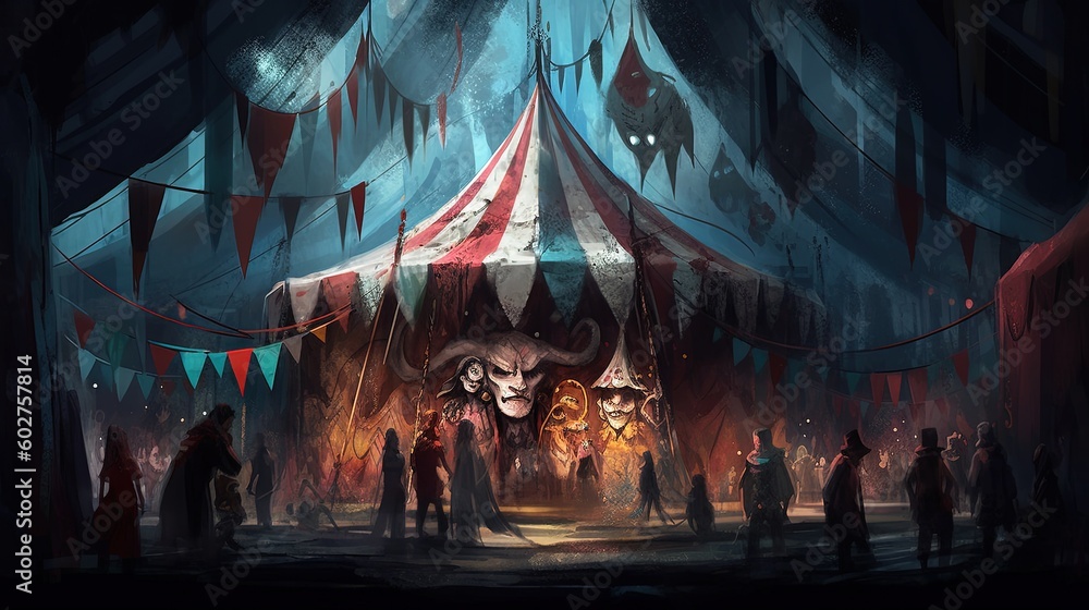 Samolepka A creepy circus with sinister performers