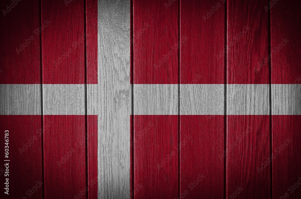 Samolepka denmark, danish flag painted on old wood plank background