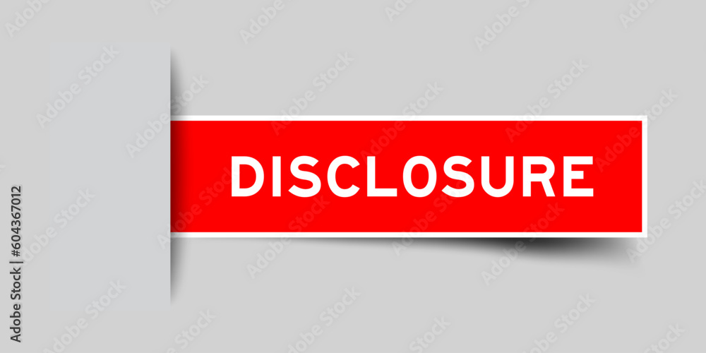 Samolepka Red color square label sticker with word disclosure that inserted in gray backgr